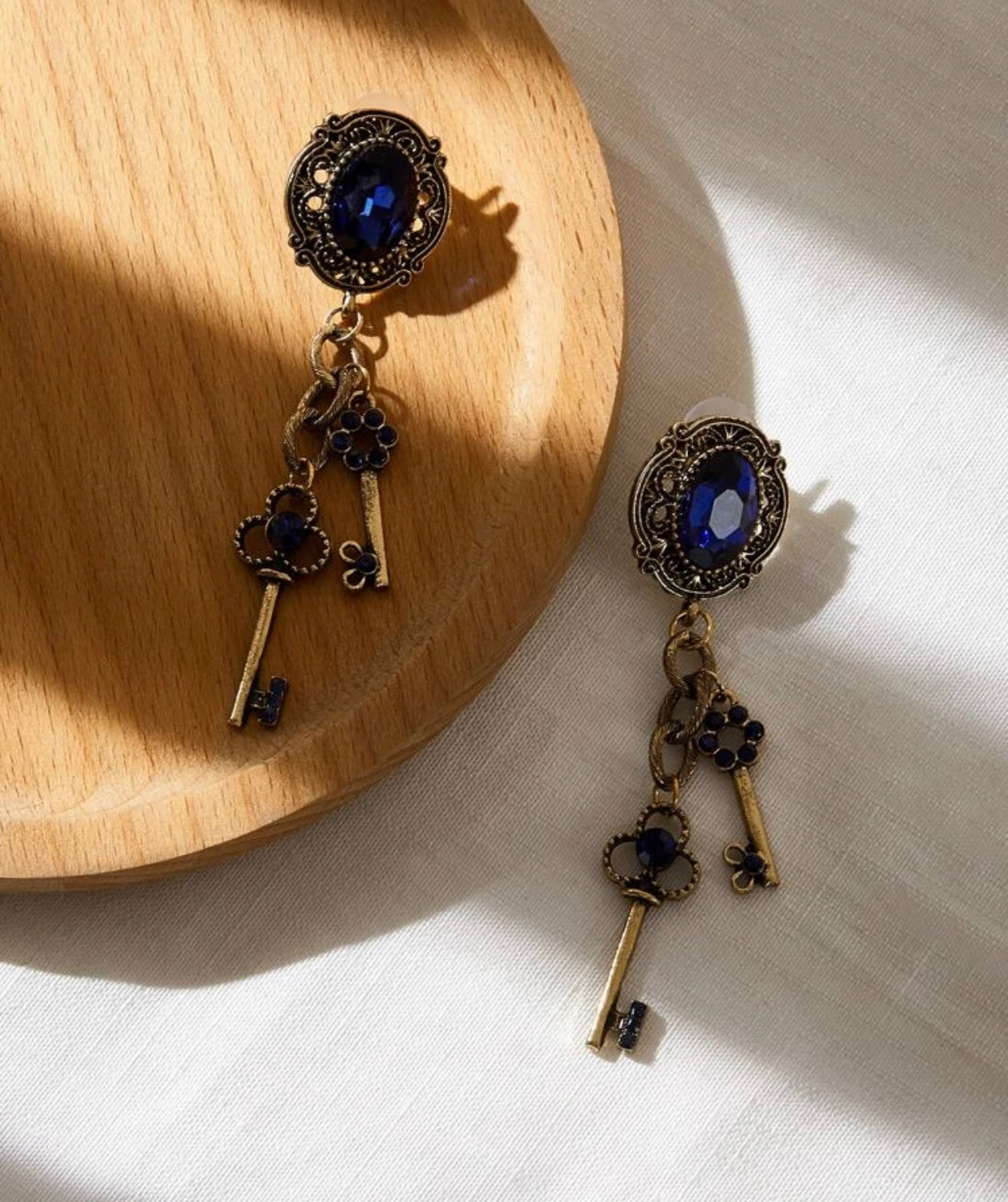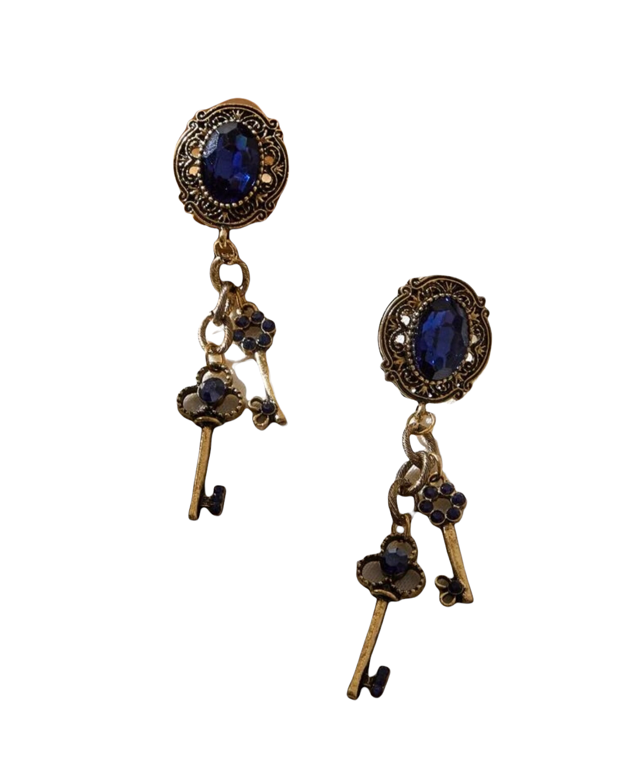 Blue sapphire inspired key decor drop earrings