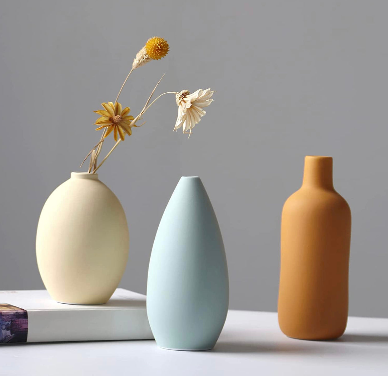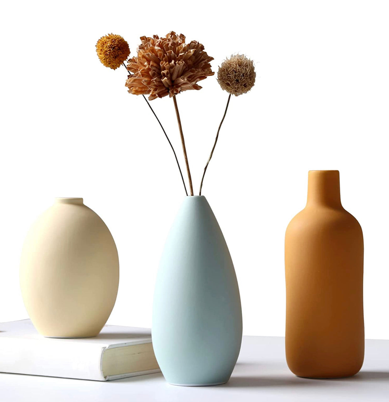 Ceramic Vase Set of 3, Small Flower Vases for Rustic Home Decor