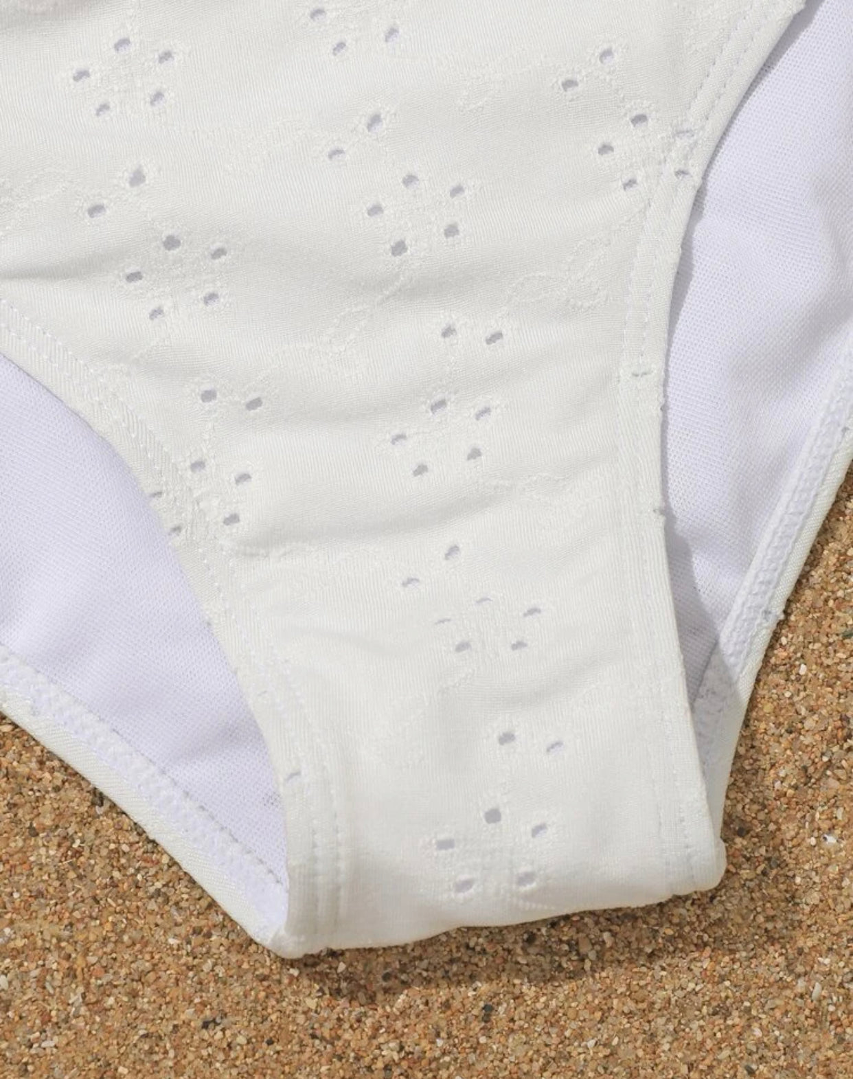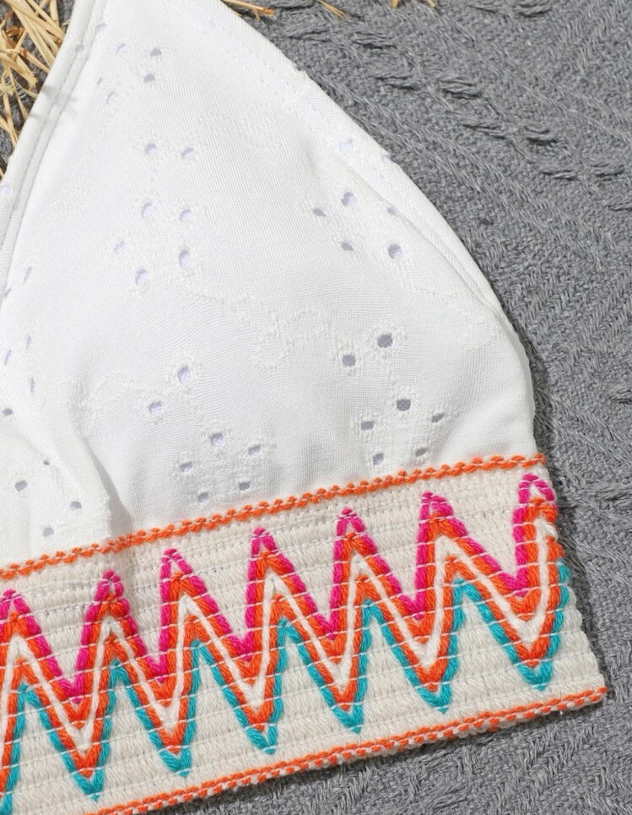 Girls 3 piece chevron print eyelet embroidered halter bikini swimsuit with cover up