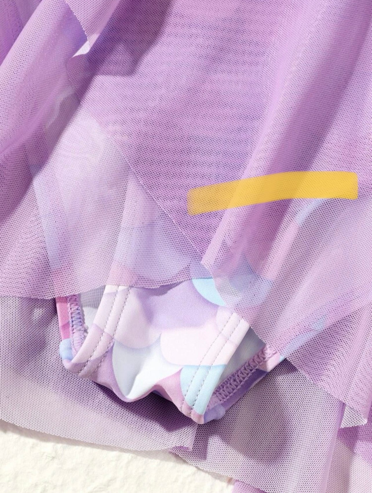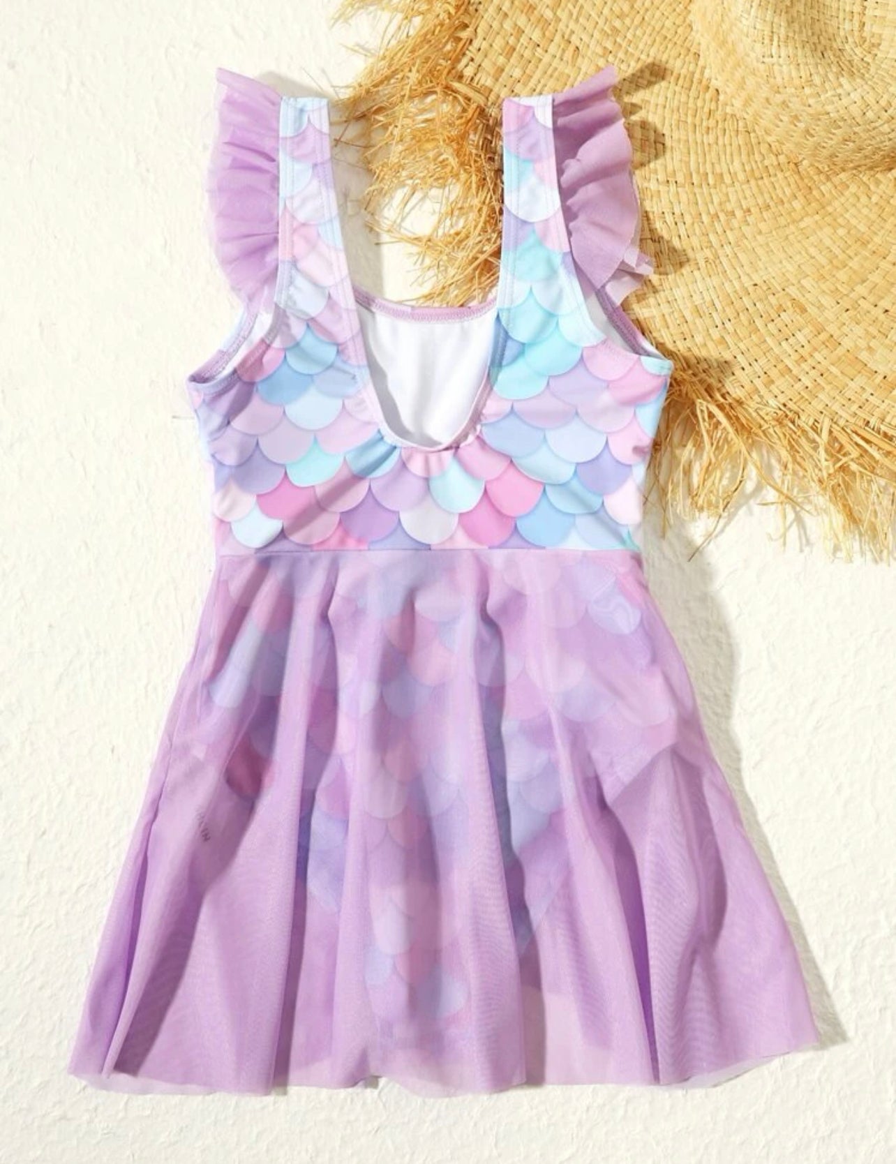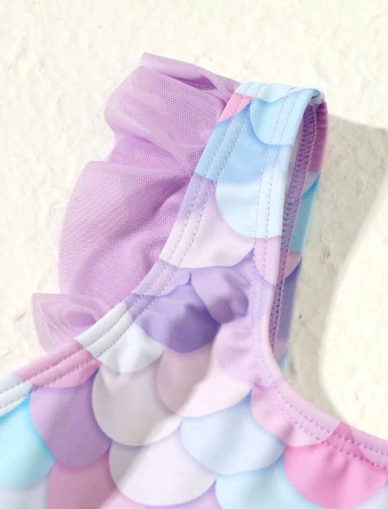 Girls Fish Scale Print Ruffle One Piece Swimsuit