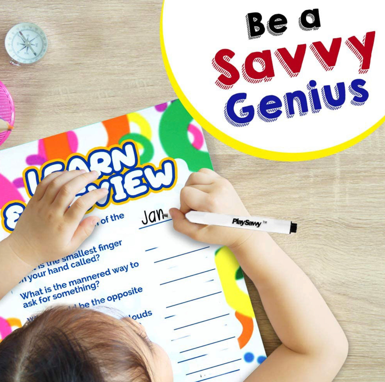 - COMPLETE 38 PIECE EDUCATIONAL POSTER SET- PlaySavvy brings you a complete poster set of 38 pieces that helps toddlers and preschoolers learn to converse in both English and Spanish in a colorful, fun way. Our set also features a Dual Language Review Card on which your kids / students can write and erase their answers with our Expo Marker and Eraser that are included! Plus, With each set you also get a Zippered Mesh Storage Bag for easy carry and storage!