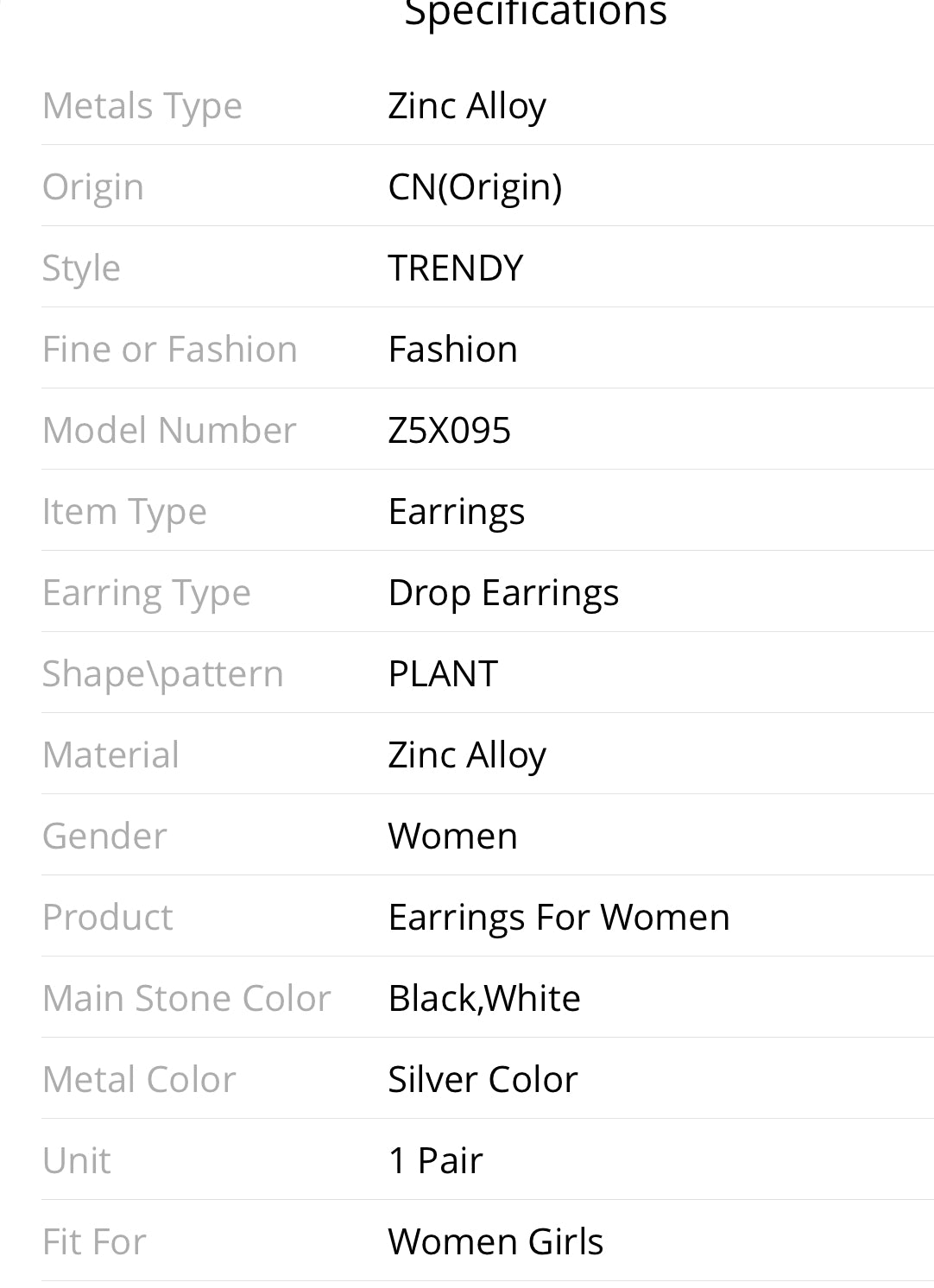 Lovely Black White Resin Stone Drop Earrings for Women Girl Creative Jewelry Painting Tree Leaves Dangle Earring Gifts