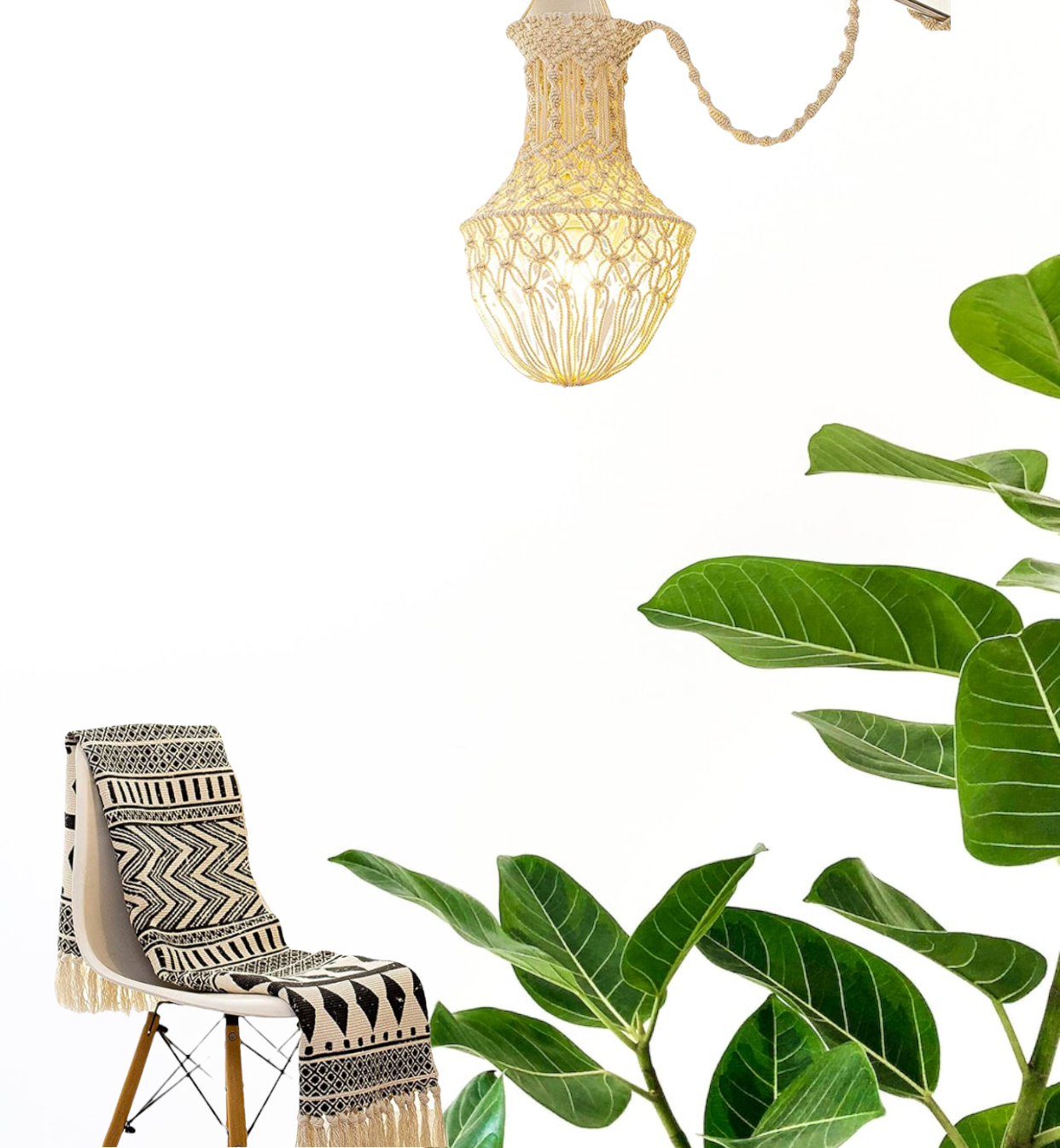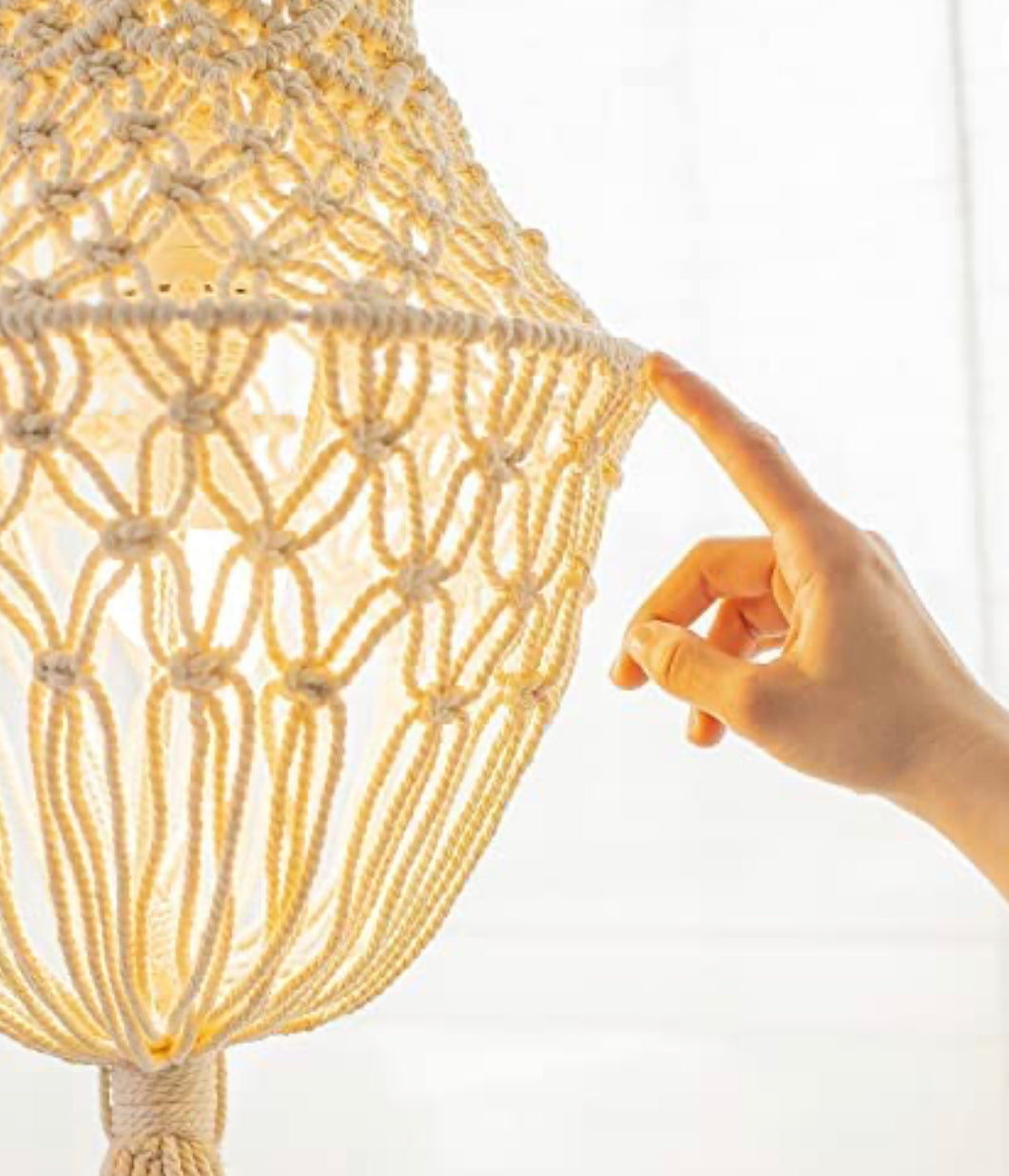 Macrame chandelier Boho Bedroom Hanging Lamp Shades with Plug in Cord
