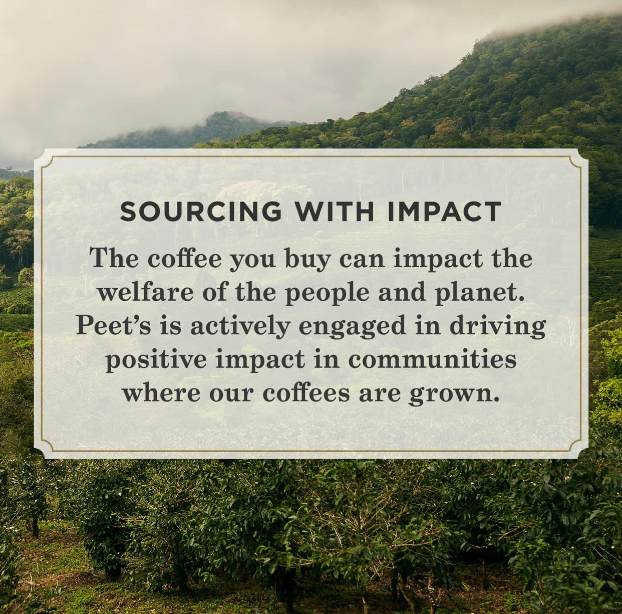 - Sourcing with Impact: The coffee you buy can impact the welfare of the people and planet. Peet’s is actively engaged in driving positive impact in communities where our coffees are grown.