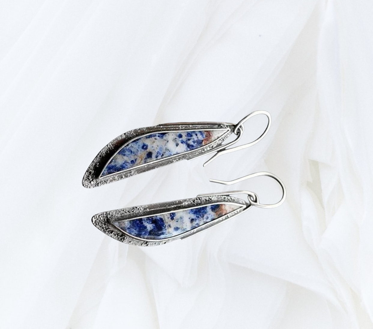 Retro silver personalized semi-precious lapis lazuli inspired stone dangle earrings