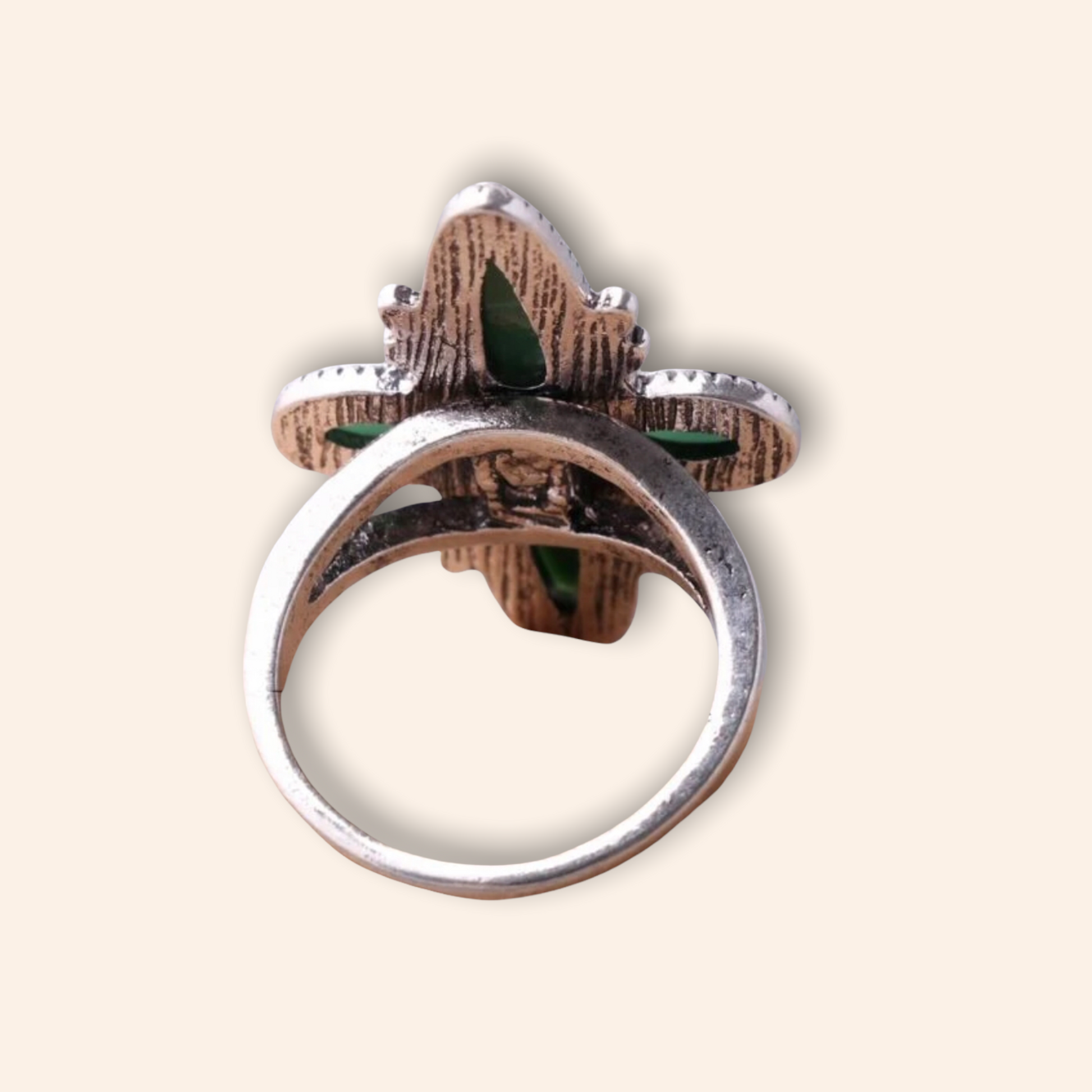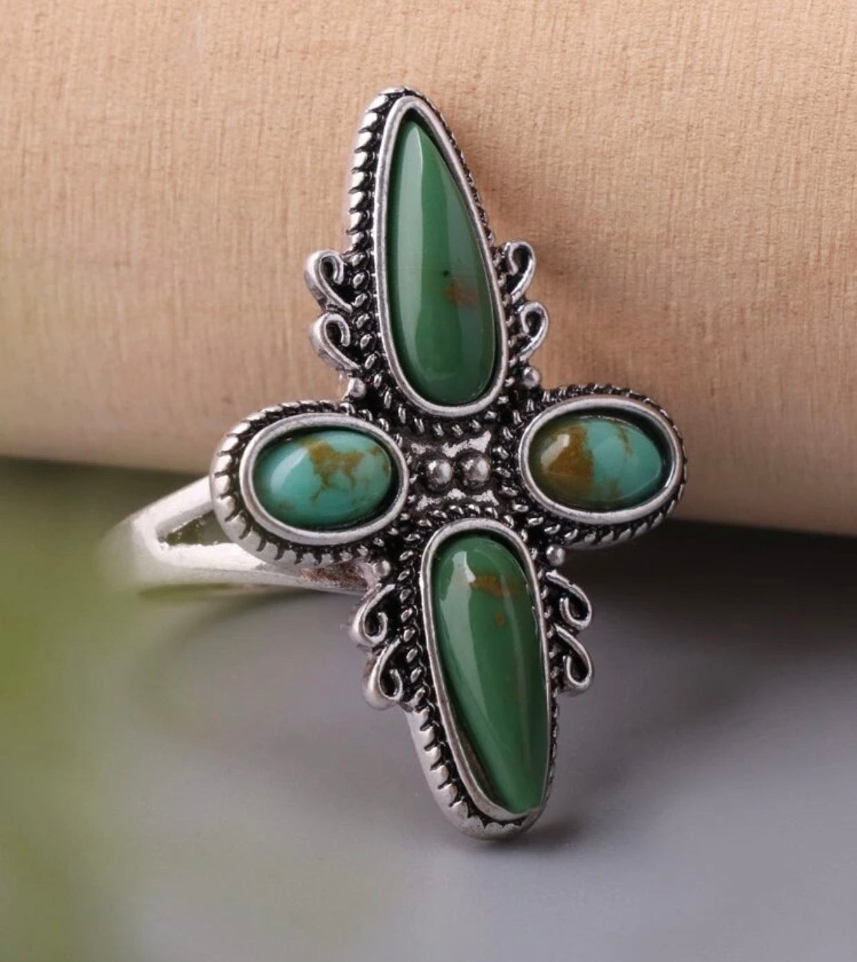 Water drop turquoise inspired textured metal ring. Size 8.