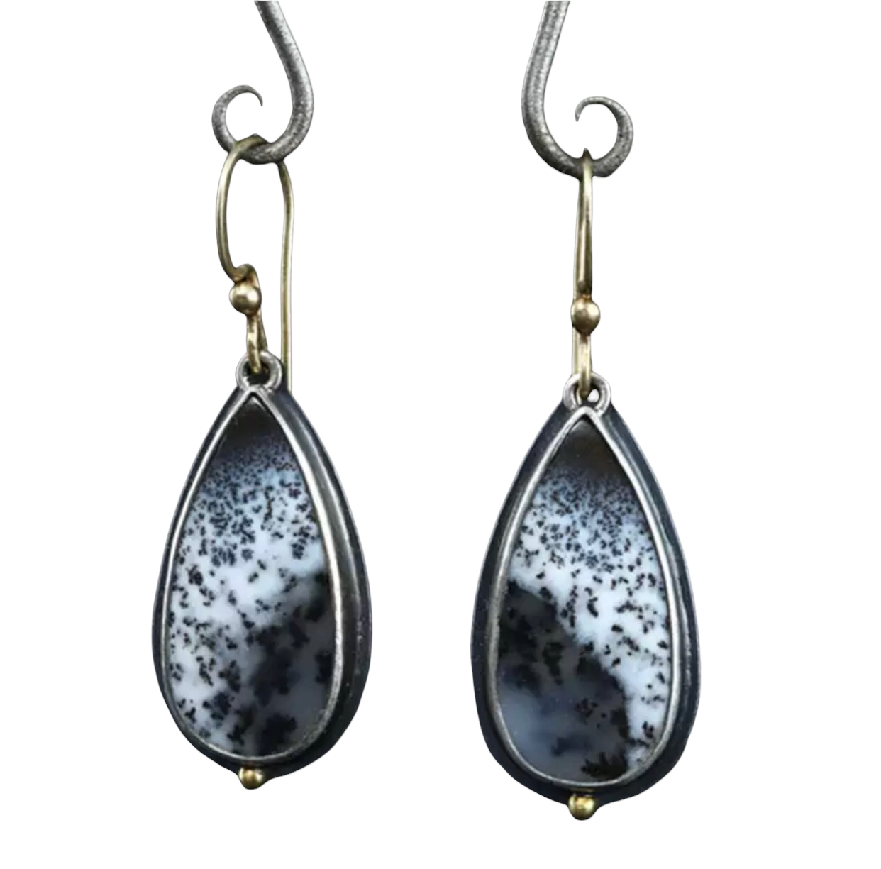 White snow inspired black ornament enamel dangle earrings