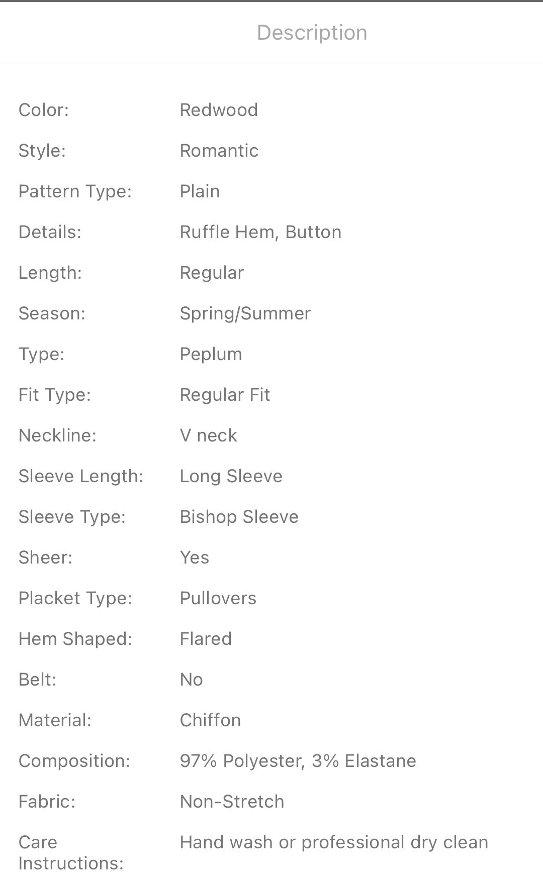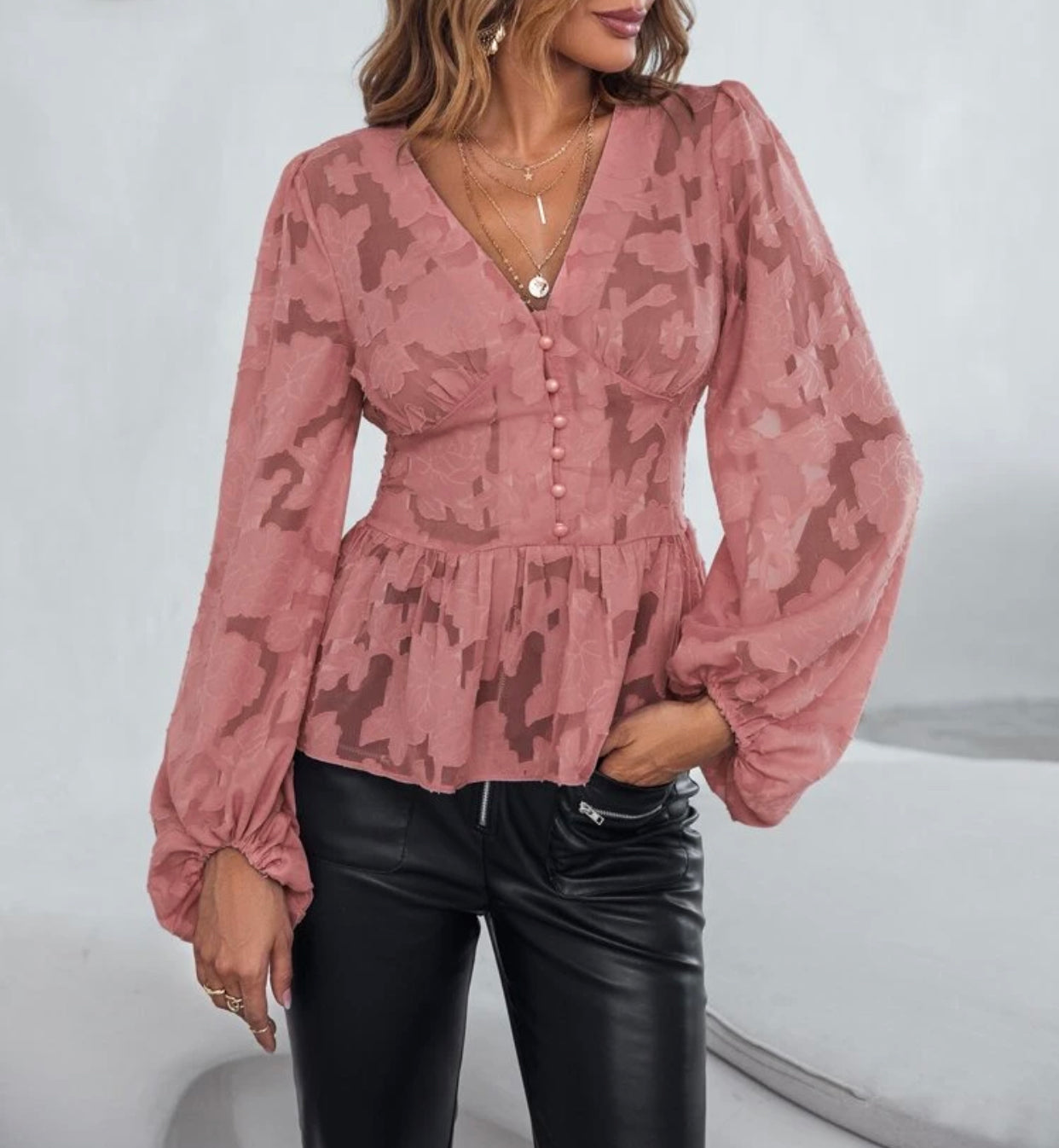 Women’s Redwood chiffon bishop sleeve peplum blouse