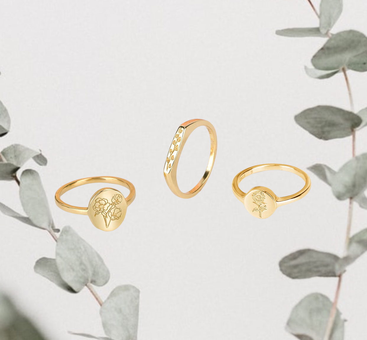 Yellew Gold-Eucalyptus Signet Ring