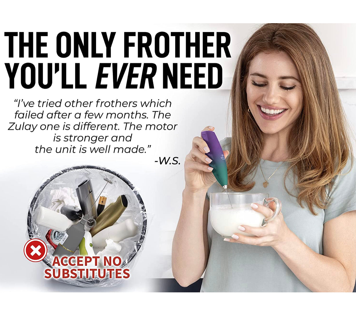 Zulay Original Milk Frother Handheld Foam Maker for Lattes